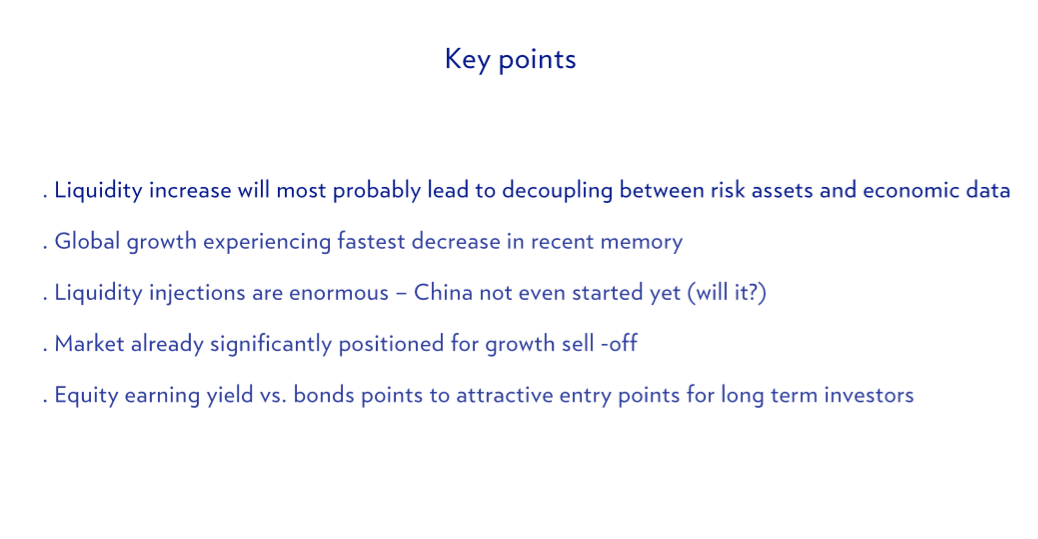 So here the inflection point is optimal for long term investors. I see a potential sea change in investors appreciation for risk assets vs defensive assets as liquidity injection will most probably be way above what would have been required...